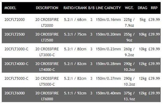New Daiwa 20 Crossfire LT Spinning Fishing Reel - All Models