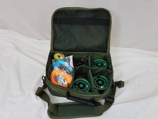 FLY REEL WITH 3 SPARE SPOOLS AND 3 FLY LINES IN REEL CASE