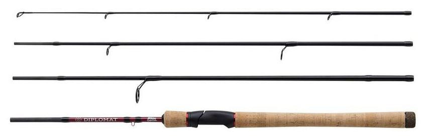 The famous DIPLOMAT range stands for mobility and travelling. These spinning rods are very short in transport length due to their 4 or 5 section blank design, but they fish and feel like a conventional 2 section rod! Ideal rods to bring on holiday or to keep in the back of your car - always ready to fish! The range contains a number of different lengths and casting weights, so plenty of opportunities for different techniques, species and situations. The rods come with a strong travel tube case.