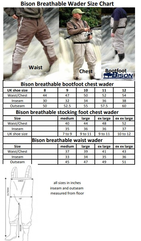 BISON BREATHABLE CHEST WADERS COMPLETE WITH FELT OR RUBBER SOLE MK2 WADING BOOTS