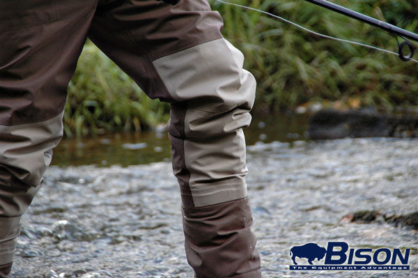 Bison Wader Warranty & Repairs Upon receipt of waders returned to us we will pressure test and evaluate the condition of your waders, then contact you to discuss responsibility for repair or replacement. Our policy is clear. Bison stand behind every wader they make. If you are not completely satisfied with your Bison waders at the time of purchase or if they fail due to defective manufacture, or materials we may repair, issue credit, or replace them, at our discretion, free of charge. We promise to evaluate your waders thoroughly and fairly, and ask only that you do the same before returning them for repair (The most common reasons for wader returns to us are, Neoprene waders during the spring and summer which although soaking with perspiration on the inside of the wader are not leaking at all, and stocking foot waders with punctures where toe nails have punctured the stocking)