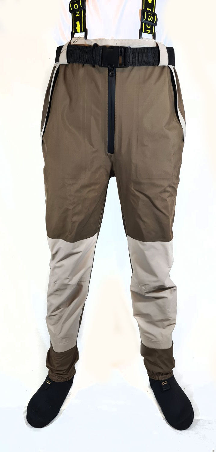 However hot the weather, you should wade and walk in total comfort. Even in the cold months you can still use them over a set of base-layer thermal. In the past, reliability and efficiency in breathables has come at a big price. Not now. These are real quality breathables at a fantastic price. The fabric is waterproof to a hydrostatic pressure of 10,000mm/H2O and breathable to 4,000 g/m²/24hr. In normal speak, this means that you can deep-wade with complete security and you can walk miles in a heat wave! The four-layer construction gives extreme ruggedness with hardly any weight. Also provided are the built-in, elasticated gravel guards that keep the neoprene foot safe from damage.