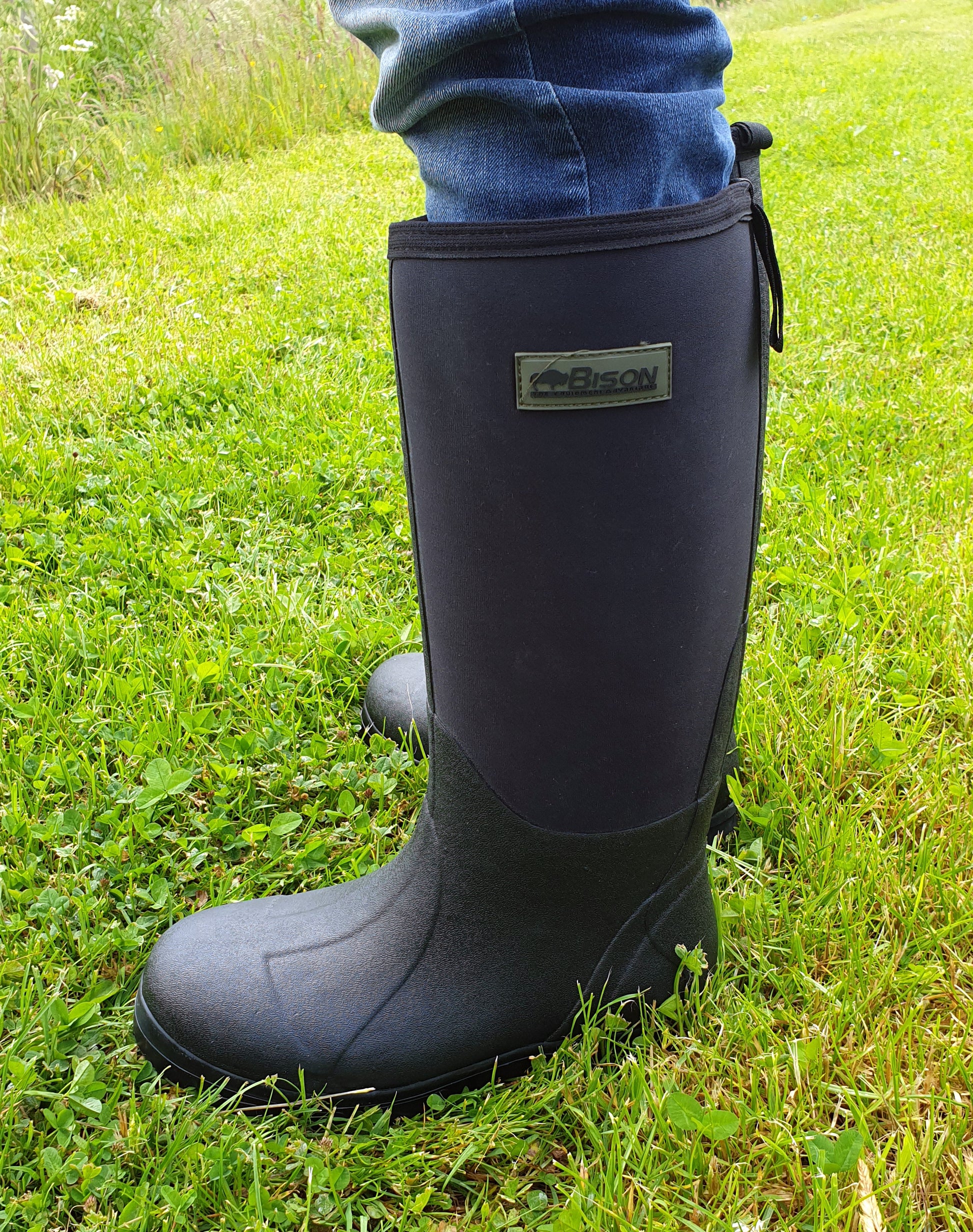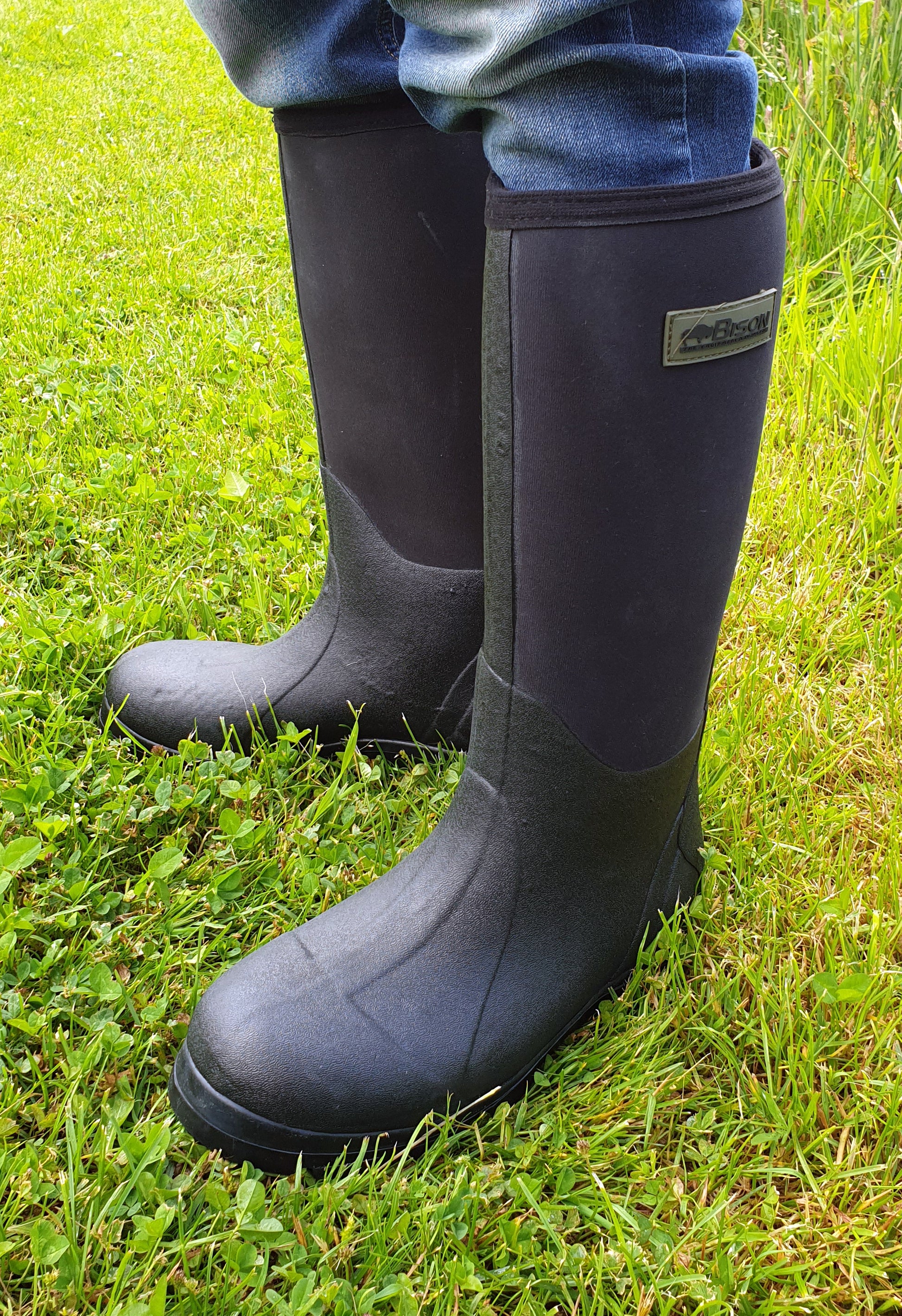 This boot is extremely comfortable, with a high calf ( 17" (44cm) or more ) made in soft 5 mm neoprene rubber .The upper wraps softly around the calf to make them the most comfortable wellingtons and also watertight and tough .