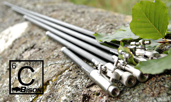 Bison Carbon telescopic banksticks are manufactured here in the UK and offer a lighter alternative to Bison Stainless Steel Bank sticks .