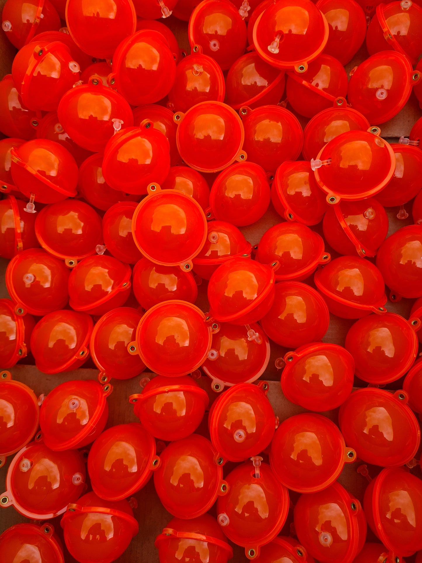 really high quality orange 40mm diameter bubble floats , available in packs of 5 ,10 or 100 please choose pack size from drop down menu