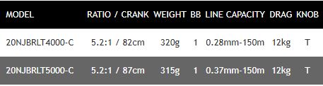 The small and compact 20 Ninja BR LT free spool reels are suited to all round fishing.