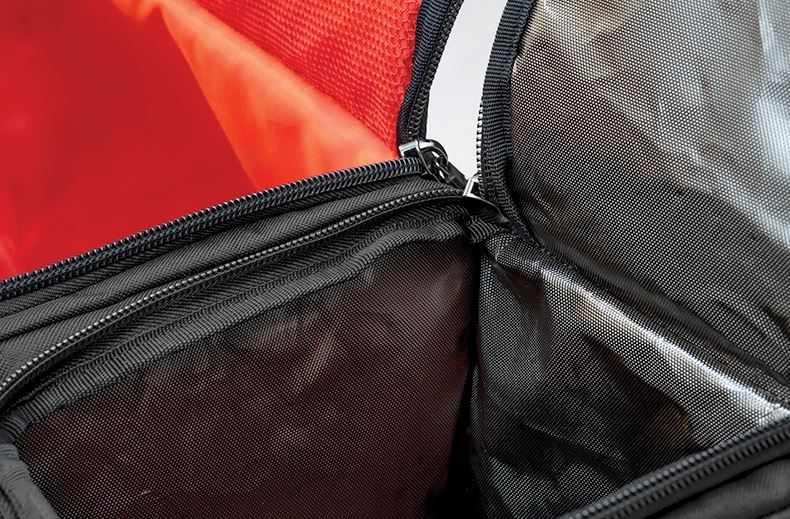 The main, large padded compartment offers well over 20lt for tackle storage and features a red lined interior for easier visibility of items. Designed to accommodate a mixture of multiple Matchman Bitz Bags, as well as any tackle boxes it also offers a zipped mesh pocket on the inside of the lid.