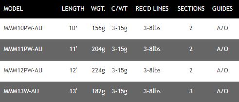 The HMC blanks are furnished with ceramic lined steel framed guides, finished off with a cork/EVA handle featuring Armlock.