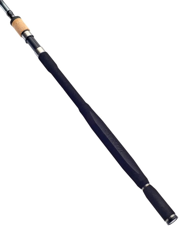 Featuring a downlocking reel seat with a cork foregrip, the handle below is shaped EVA with our classic Armlock. This is tapered down to an intermediate indent that is ideally located for locking the rod into our dual rear rod rest.