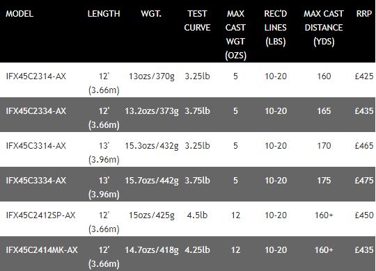 13ft 3.25 and 3.75lb test curves plus dedicated 12ft Spod and 12ft