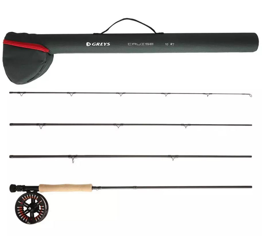 The Greys Cruise combo features a medium fast action 4pc fly rod matched with a Greys Cruise large arbour fly reel featuring a full disc drag and matching floating fly line. Available in multiple sizes, there is a Cruise combo perfect for everything from small rivers and streams, to large Stillwater lakes, and even saltwater..