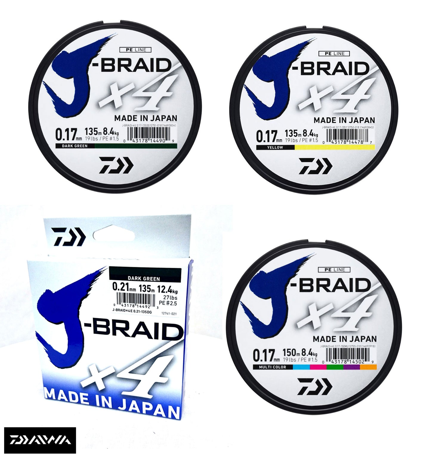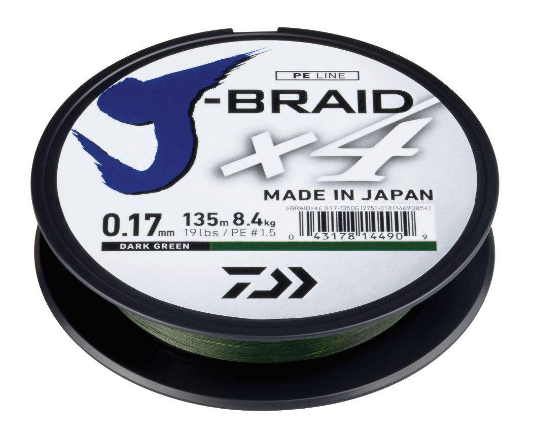 New Daiwa J-Braid X4 Fishing Line 135m Spool - All Colours & Breaking Strains