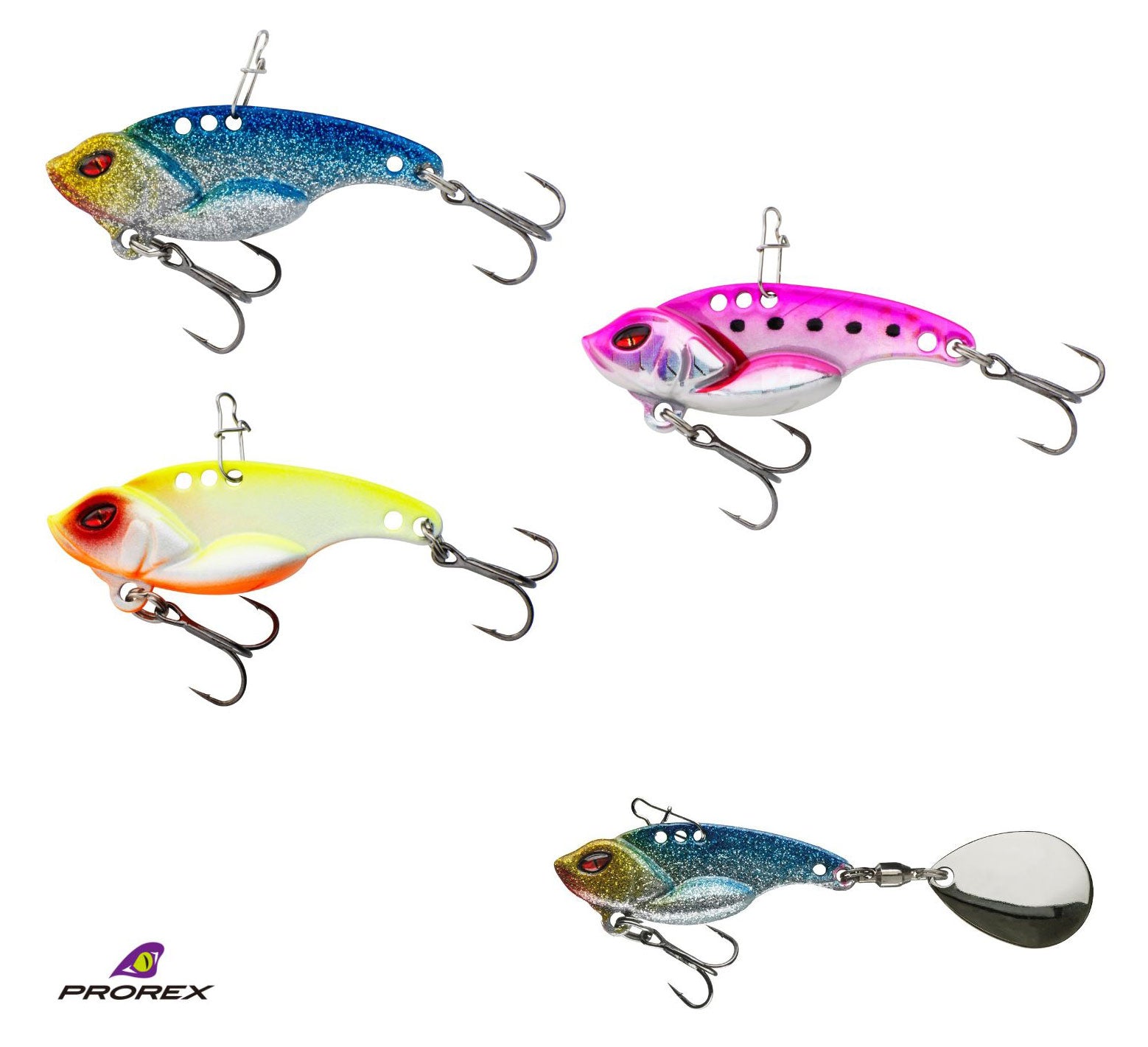 The Prorex Metal Vibe is delivered with an additional spinner blade, which can be mounted at the back eyelet to produce additional blast waves and movements. During the retrieving stop, the lure is sinking to the ground and the spinner blade is moving like a helicopter – ideal for getting bites at challenging days.