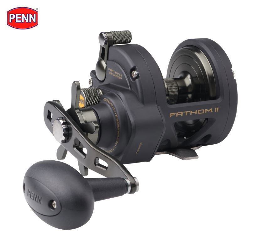 The second generation PENN® Fathom® II star drag reel is built with a rigid metal frame and sideplates, now with added features to make it more angler friendly than ever. Featuring our fast gear access sideplate, any angler can service their gears and HT-100™ drag system quickly and efficiently. The PENN live spindle design offers long, effortless casts, while the power gear ratios (select models only) give ultimate torque for winching up deep fish. Magnetic casting brake available on 12 and 15 sizes only.