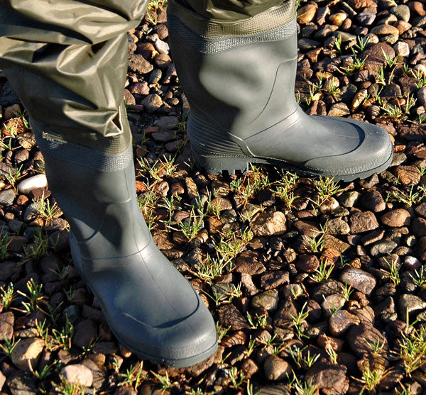 Hi-Elasticated Chest Waders finished in durable PVC coated woven nylon providing a very durable waterproof system.