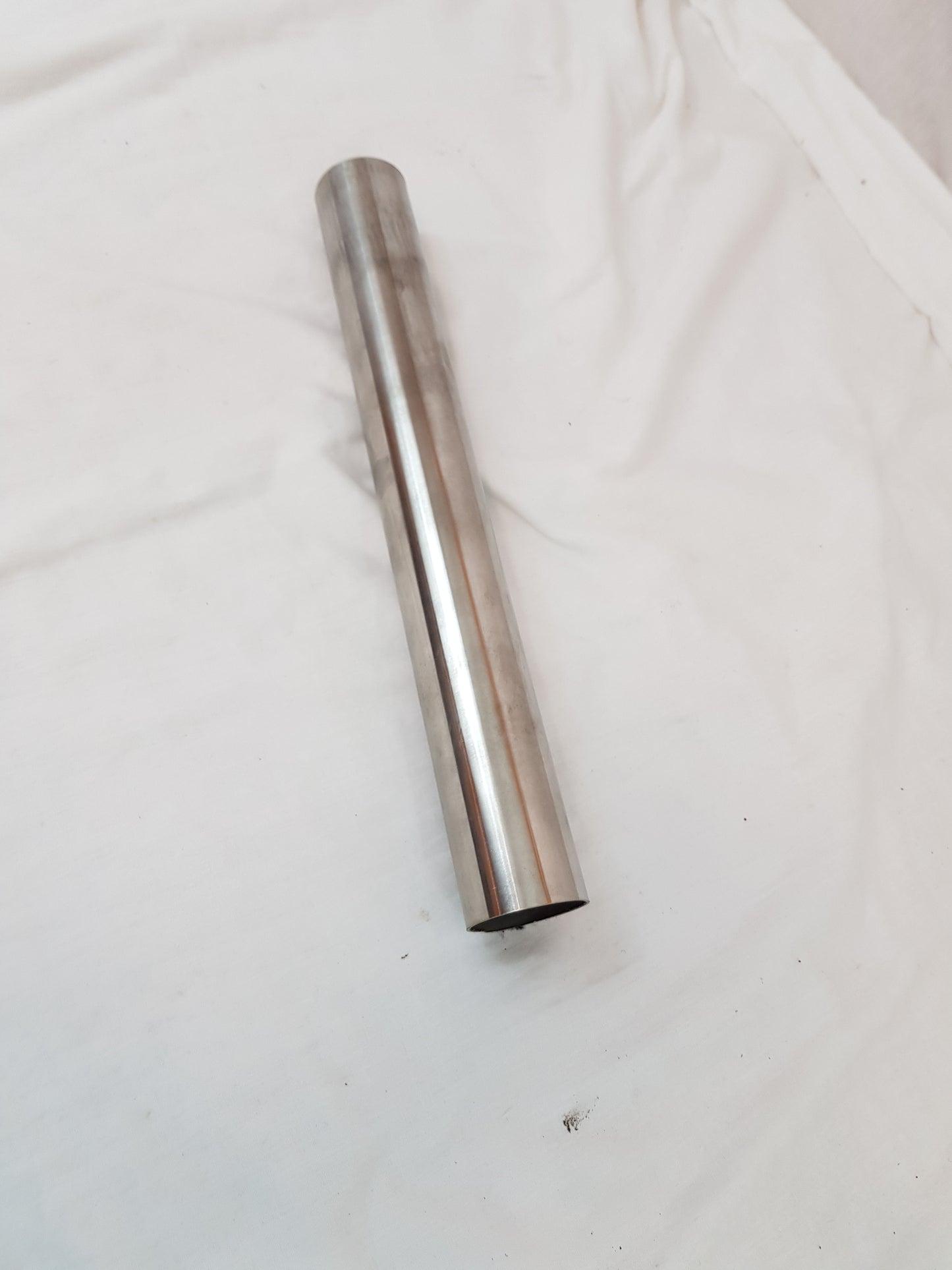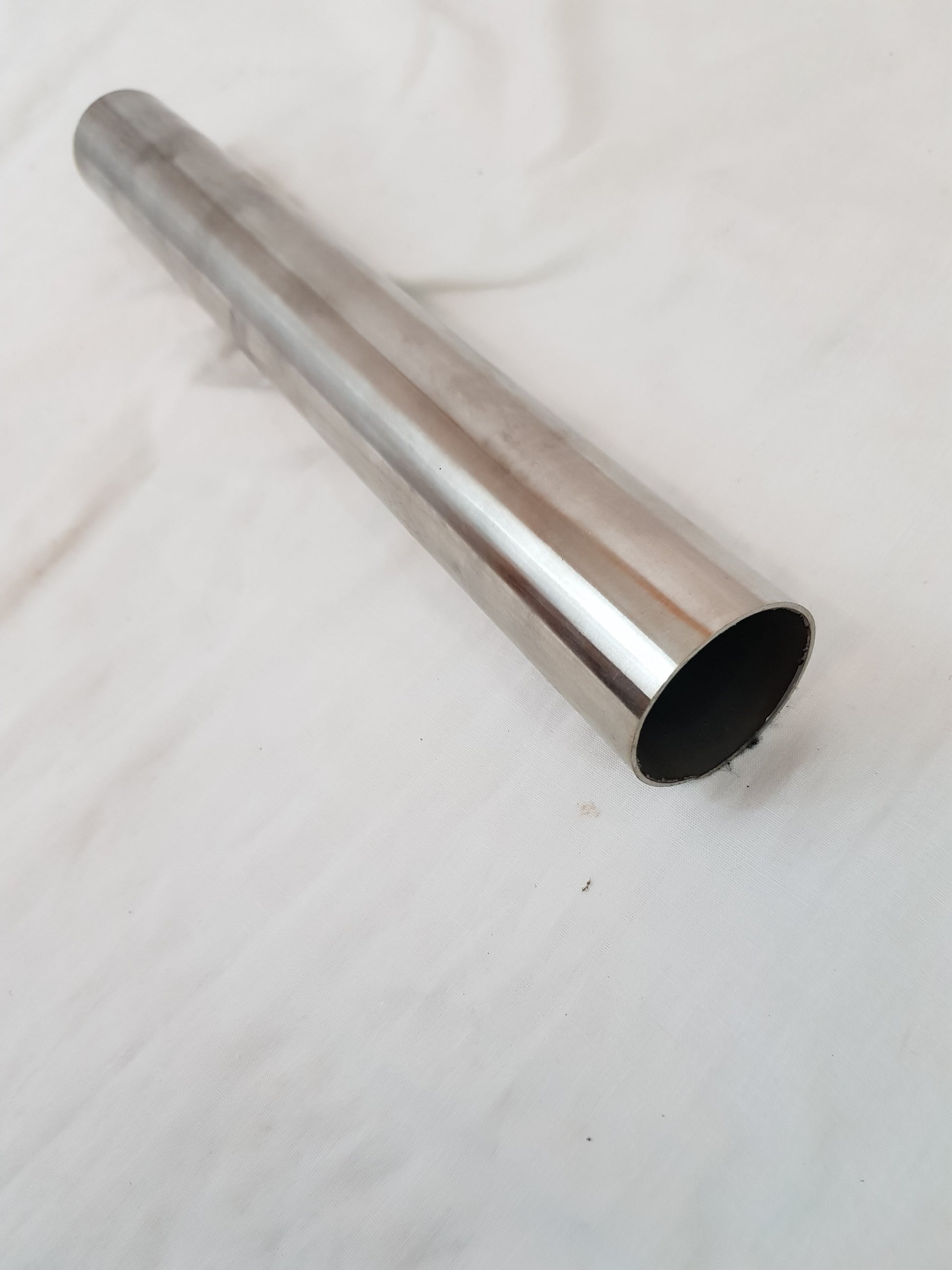 An offcut of seemless stainless steel tube 390mm long (15.375inches) 48mm internal diameter 50mm external diameter